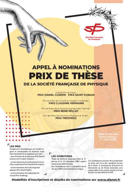 La Société Française de Physique a le plaisir d'annoncer l'ouverture des nominations pour ses Prix de thèses 2024 !